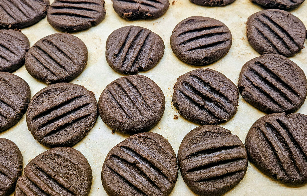 - Miękkie masło utrzeć, dodać cukier, aromat, kakao oraz mąkę z proszkiem do pieczenia.